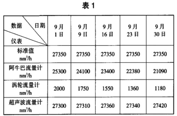 由于超聲波流量計(jì)所具有的特點(diǎn)使它作為計(jì)量?jī)x表在煤氣計(jì)量中顯示出明顯的優(yōu)勢(shì)。現(xiàn)將三種測(cè)量方法的測(cè)量數(shù)據(jù)比較如下,見(jiàn)表1。