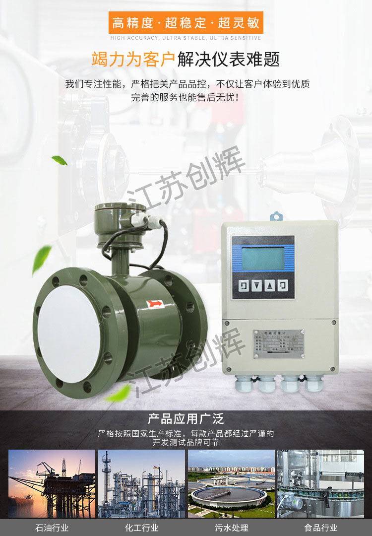 儀表系統(tǒng)測(cè)量精度高,使用范圍寬,不是可用于污水、水泥漿液礦漿液等的測(cè)量,還可用于強(qiáng)酸、強(qiáng)堿液體流量的測(cè)量。
