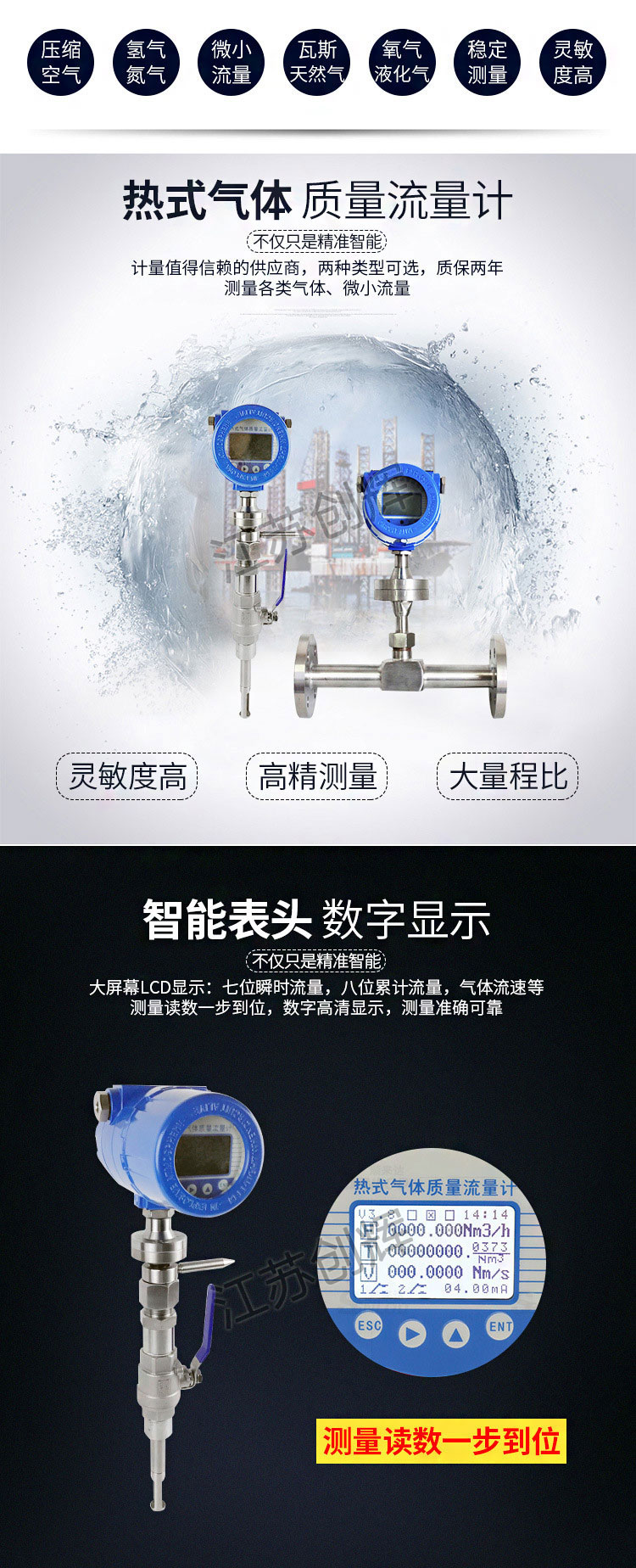 1、測量氣體質(zhì)量流量,無需溫度、壓力補(bǔ)償。