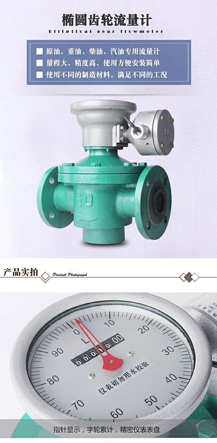 1、CH-LC-A型鑄鐵橢圓齒輪流量計,**用于各種油品及對鑄鐵不腐蝕液體介質的計量。
