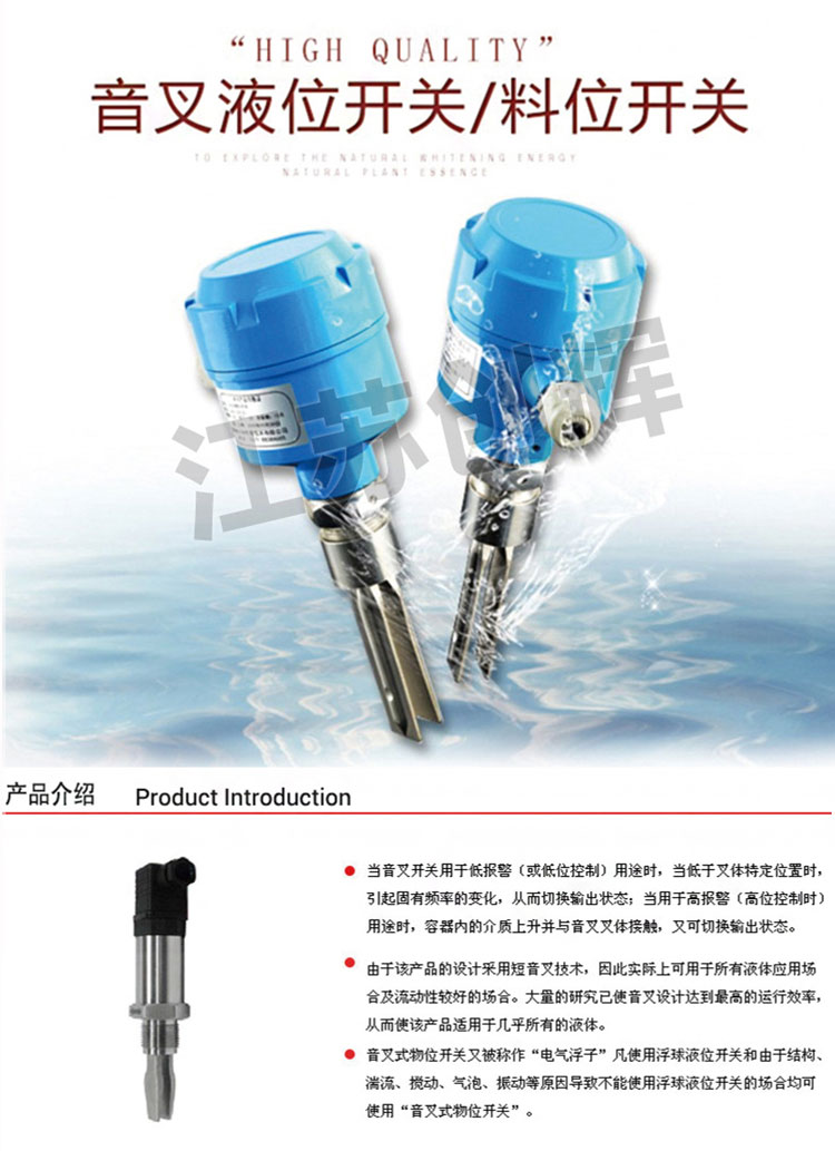 CH-YC-11音叉料位開關產品通過合理增加叉體面積,靈敏度得以極大提高,可測物料密度低至0.008g/cm³。