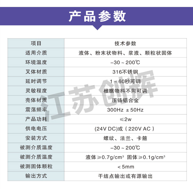 CH-YC-11音叉料位開關媲美進口品牌,性能指標如下表: